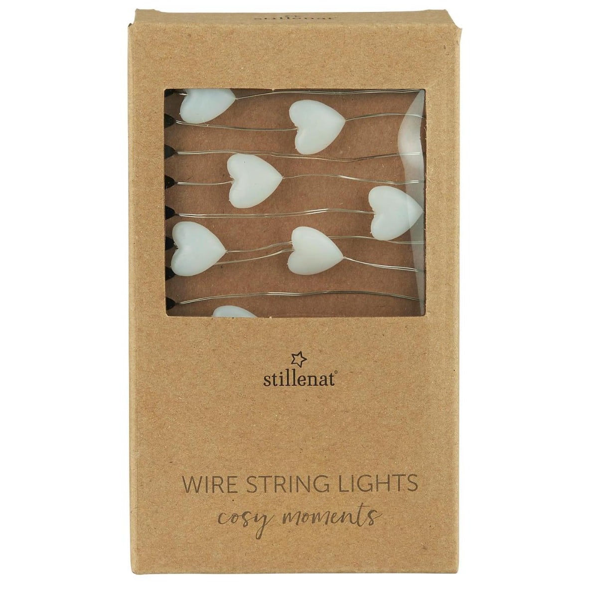 Dekorativ, tynd wire-lyskæde med 40 lysende hjerter fra Ib Laursen. Lyskæden har en udendørs batteriboks med timer, der tænder i 6 timer og automatisk slukker i 18 timer. Perfekt til at pynte det lille juletræ, en kurv, bakke, lanterne eller juledekoratio