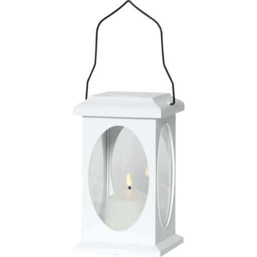 Lanterne med LED bloklys – Til indendørs og udendørs brug Denne fine hvide lanterne i plast skaber en hyggelig stemning, uanset om du placere den indenfor i hjemmet eller ude på terrassen til hyggelige aftener. Indeni finder du et smukt LED bloklys, der